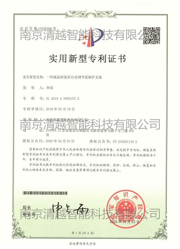 一種液晶拼接屏自動(dòng)調(diào)節(jié)前維護(hù)支架