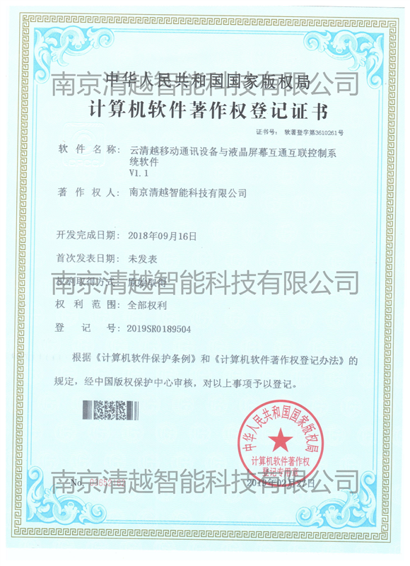 移動(dòng)通訊設(shè)備與液晶屏幕互通互聯(lián)控制系統(tǒng)軟件著作權(quán)